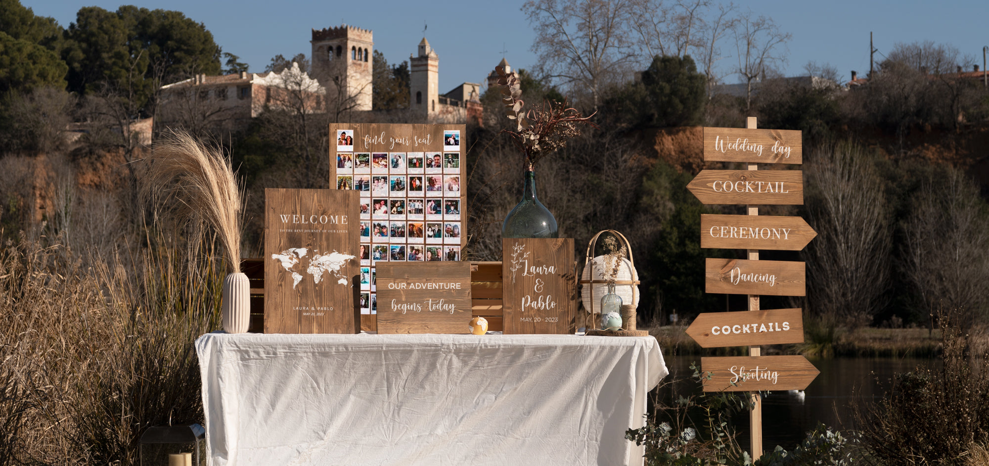 Trabalhamos com materiais como a madeira ou a cortiça, e imprimimos os desenhos com serigrafia ou impressão digital. Recordem esse momento especial com o complemento perfeito para o vosso grande dia.