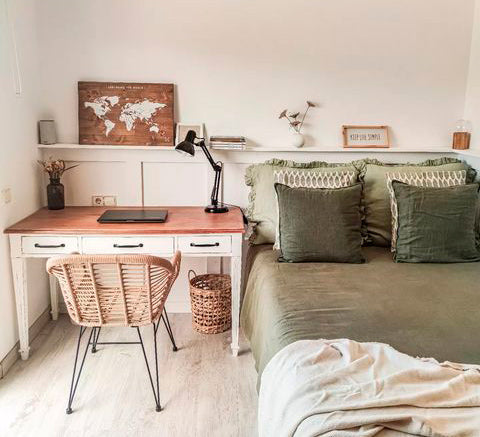 Ter um quarto pequeno não tem de ser um problema se souber como decorá-lo corretamente. Dê-lhe algum espaço, acrescentando uma cabeceira criativa à sua cama. Esta tornar-se-á a peça estrela e o centro das atenções.