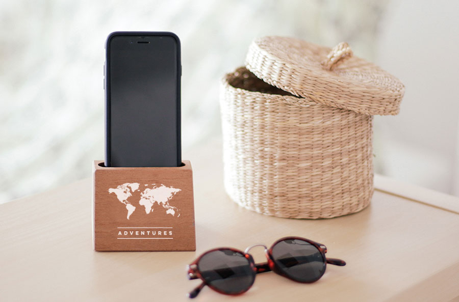 Um presente essencial para aquele amigo que trabalha à distância, este suporte para telemóvel é ideal para a secretária e irá inspirá-lo a viajar com o nosso design original. Este tipo de madeira é sólido e provém de florestas tropicais sustentáveis.
