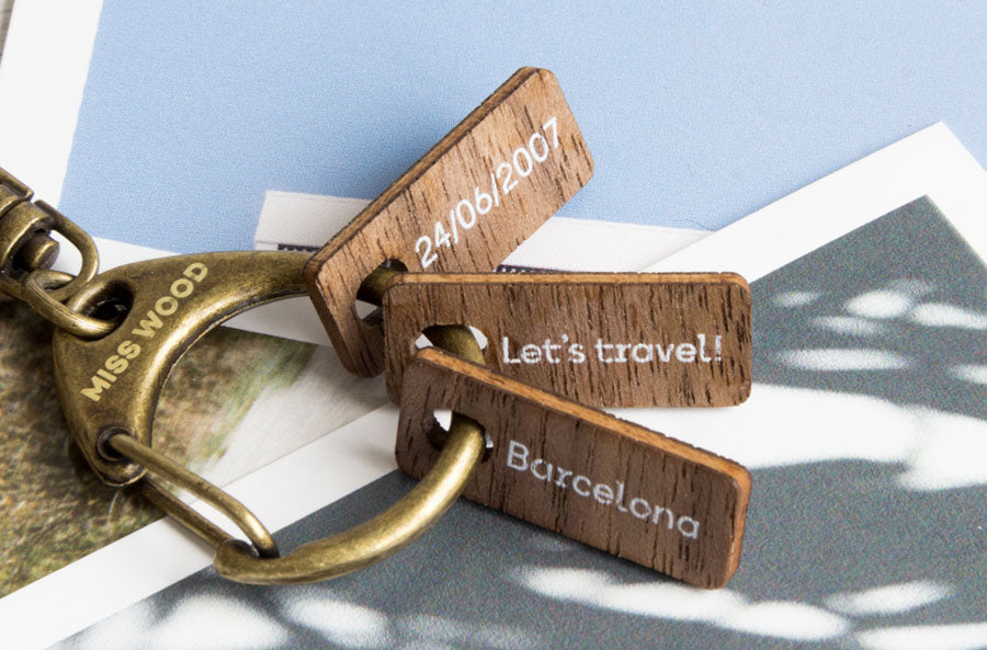 Estas peças de madeira coleccionáveis são ideais para oferecer a alguém especial, com uma data importante, um nome, a bandeira do seu país preferido, uma canção que o identifique ou o seu signo do zodíaco como amuleto. Perfeitas para levar no porta-chaves para onde quer que vá.