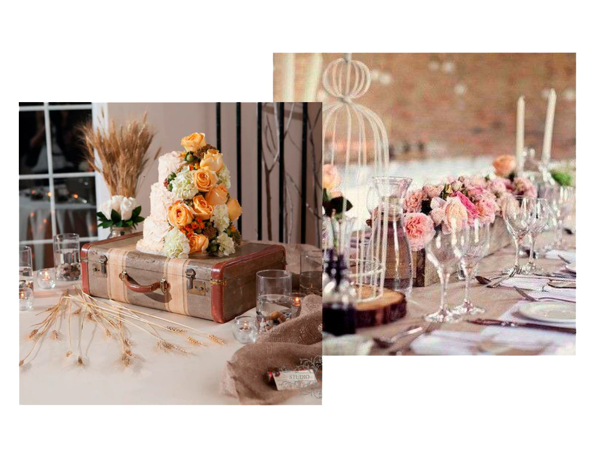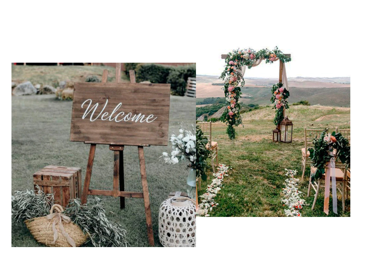 The botanical concept is related to ceremonies celebrated in the countryside or outdoors, where the elements of nature play a fundamental role. Flowers and wood are the protagonists.