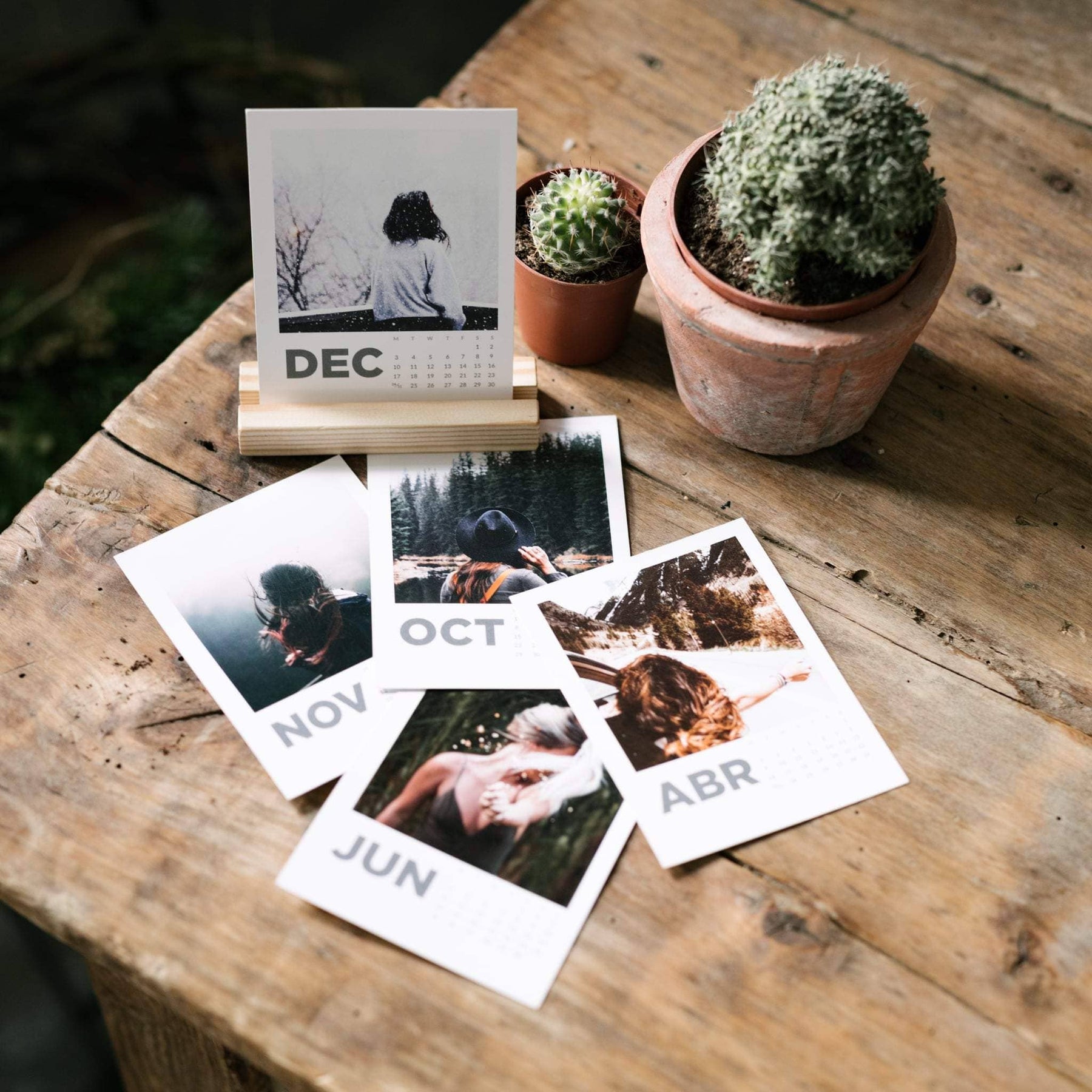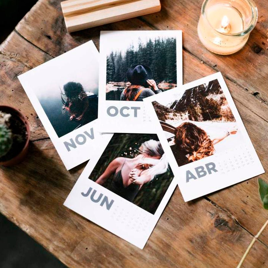Calendario polaroid en mesa