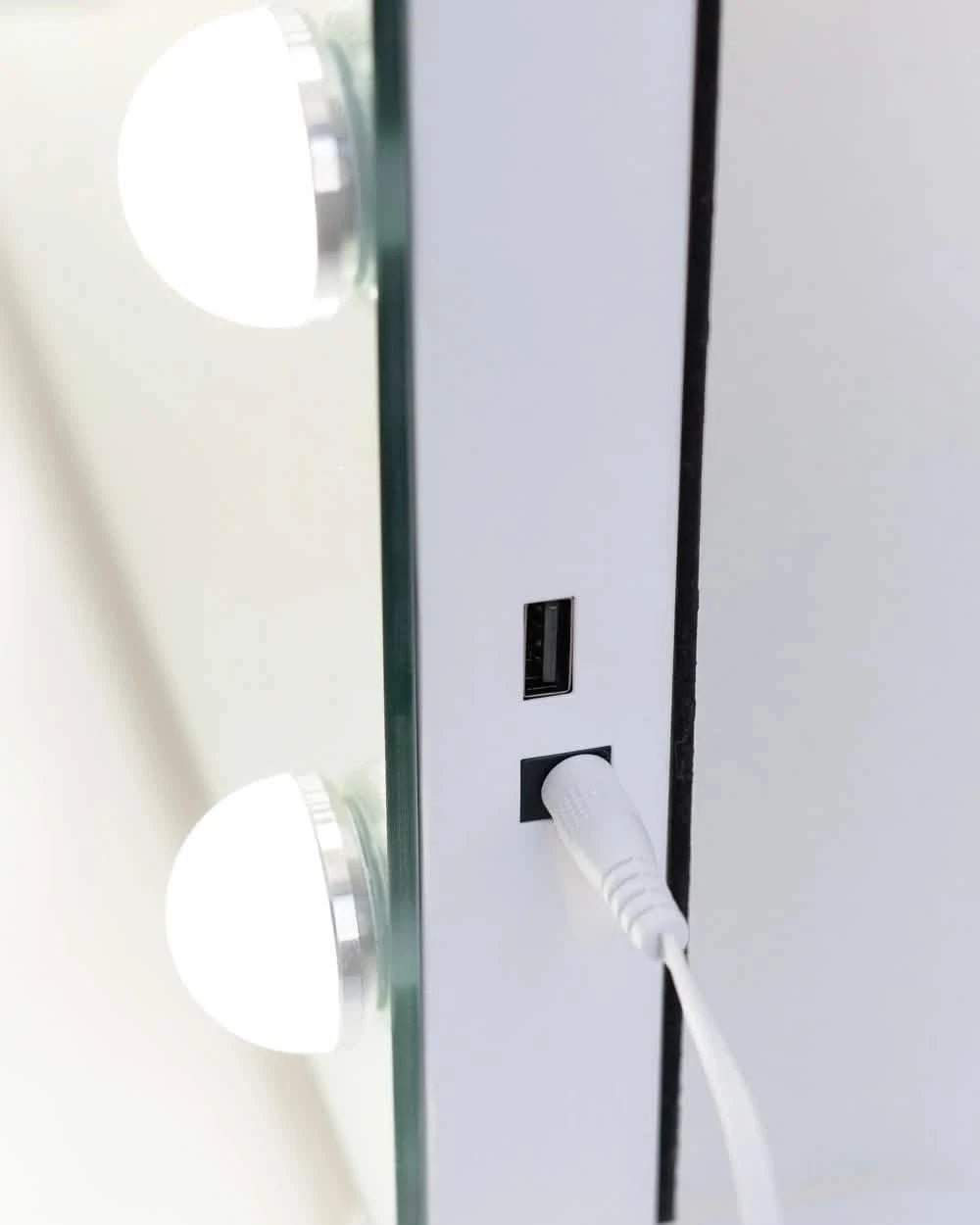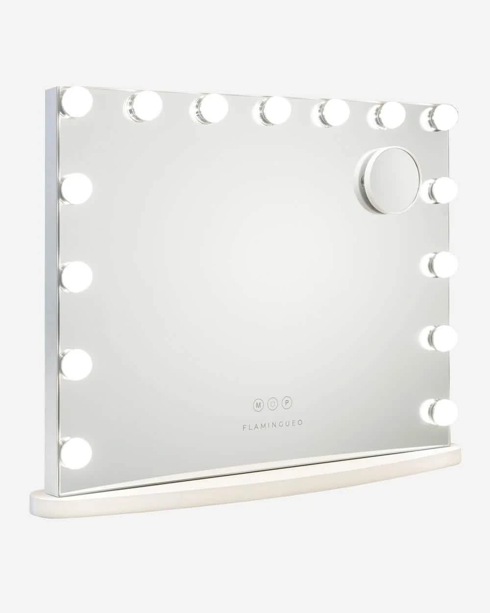 Espejo blanco con 15 luces LED, perfecto para maquillarte o cuidar tu piel con la luz ideal.