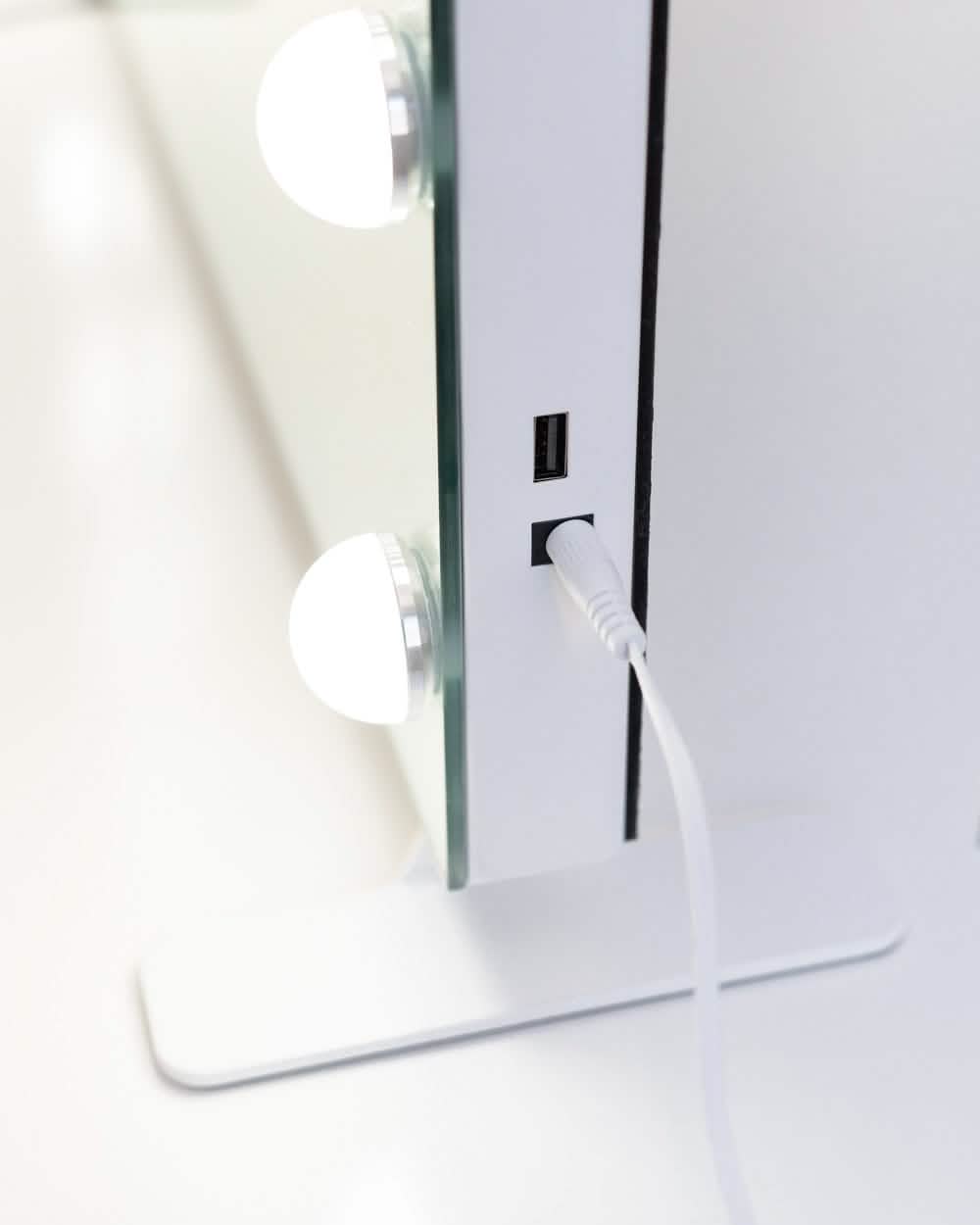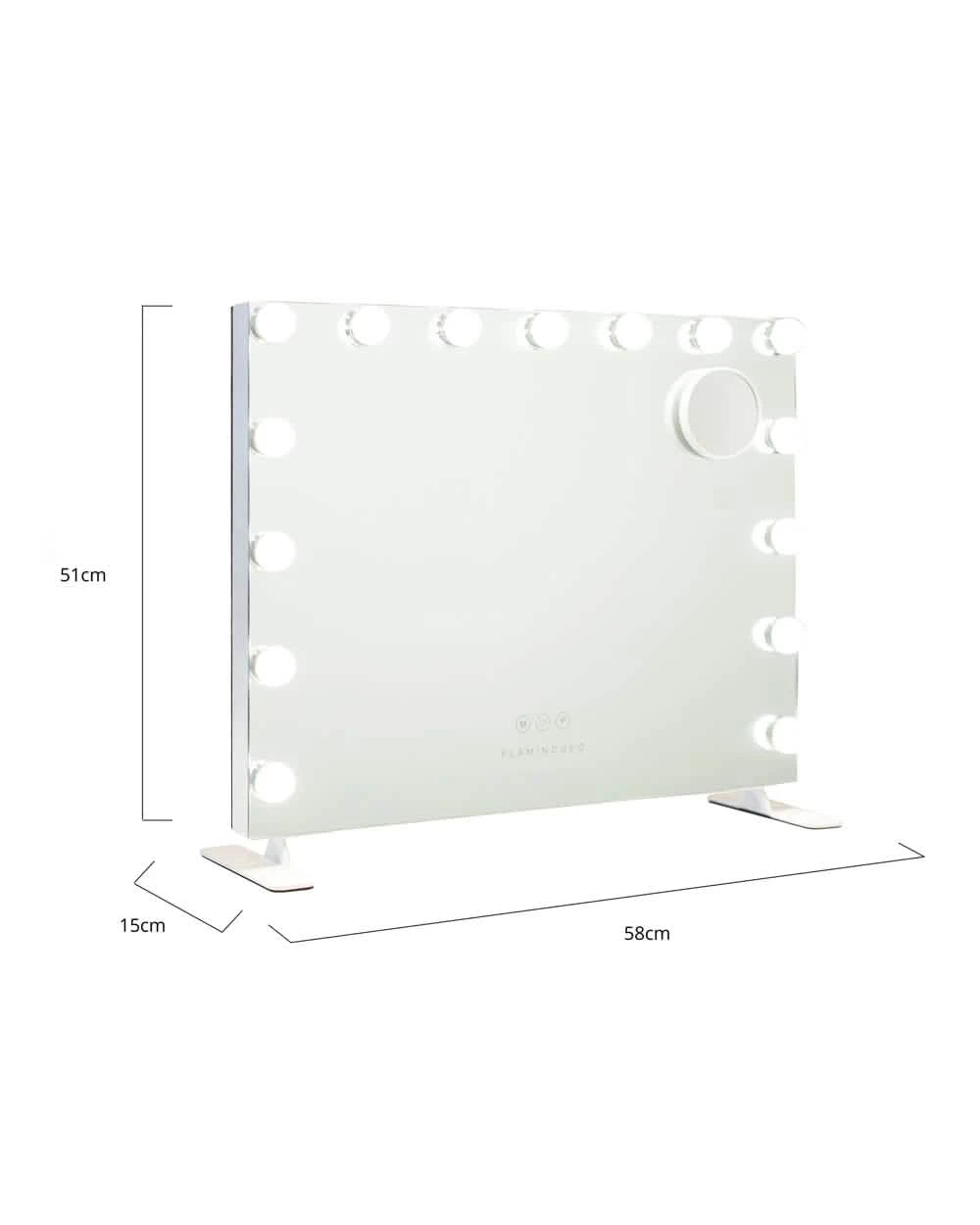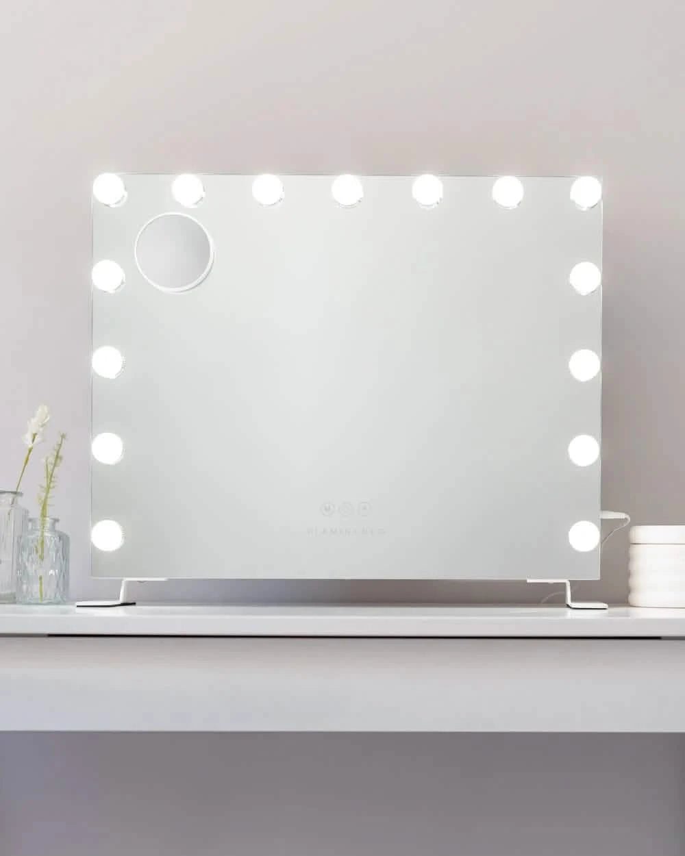 Espejo negro con 14 luces LED, ideal para maquillarte o mimarte con tus rutinas de belleza.