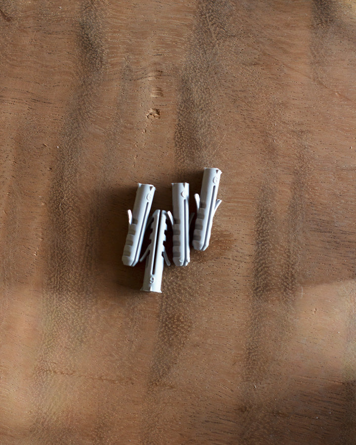 São peças de plástico utilizadas para fixar o parafuso à parede ou ao móvel. São colocadas depois de o furo ter sido efectuado e a sua espessura deve estar de acordo com o tamanho da broca utilizada para a perfuração.