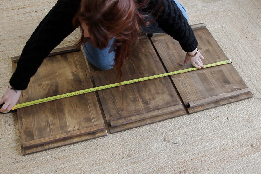 Coloque as três peças como seriam, mas de cabeça para baixo, para que possa ver os encaixes ou cabides.