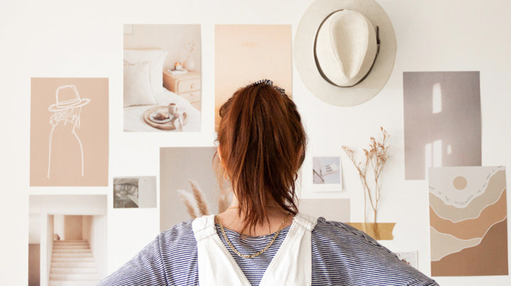 Se preferir utilizar papel, recomendo que recorte folhas de papel ou de papel de artesanato do tamanho dos quadros e que as cole na parede, como um esboço, utilizando fita adesiva.