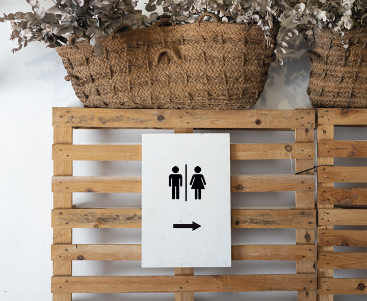 Uma ideia criativa para assinalar as casas de banho da sua empresa ou estabelecimento, com material envernizado de alta qualidade.