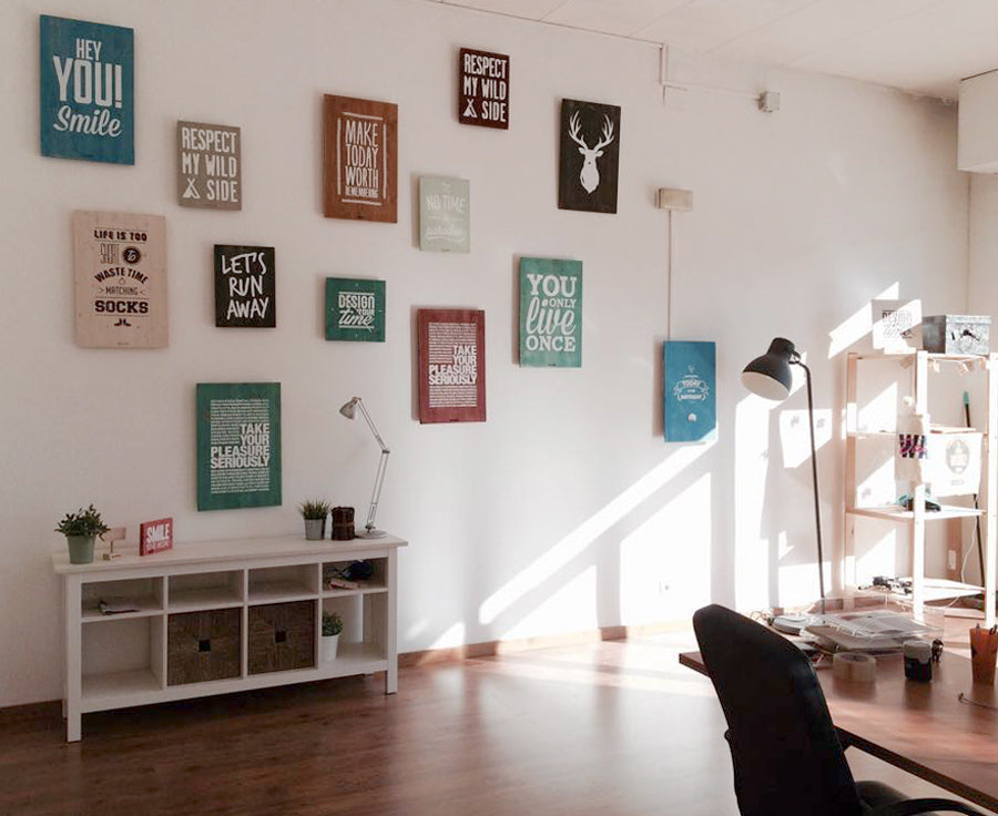 Dê estilo ao seu espaço de trabalho com sinais e cartazes de madeira feitos à mão. Personalize os cantos vazios com frases motivacionais e crie uma atmosfera inspiradora.