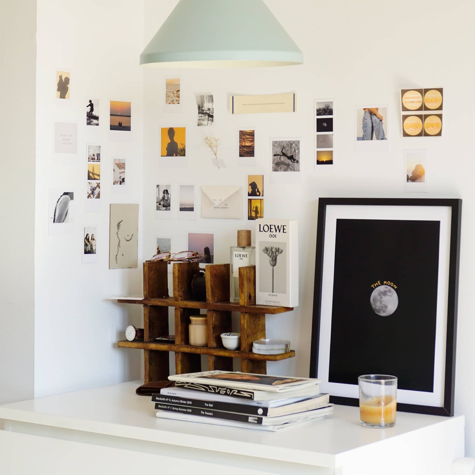Crie uma composição tipo colagem na parede, combinando-os com outros elementos decorativos ou tamanhos de fotografias.