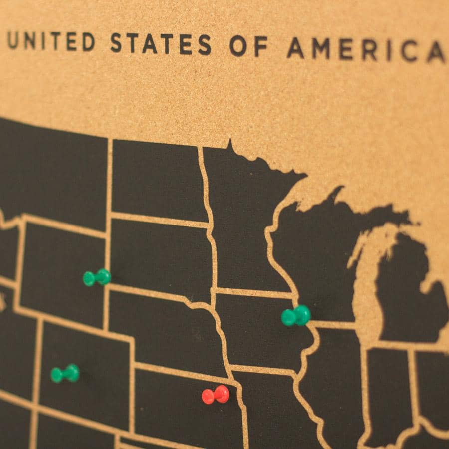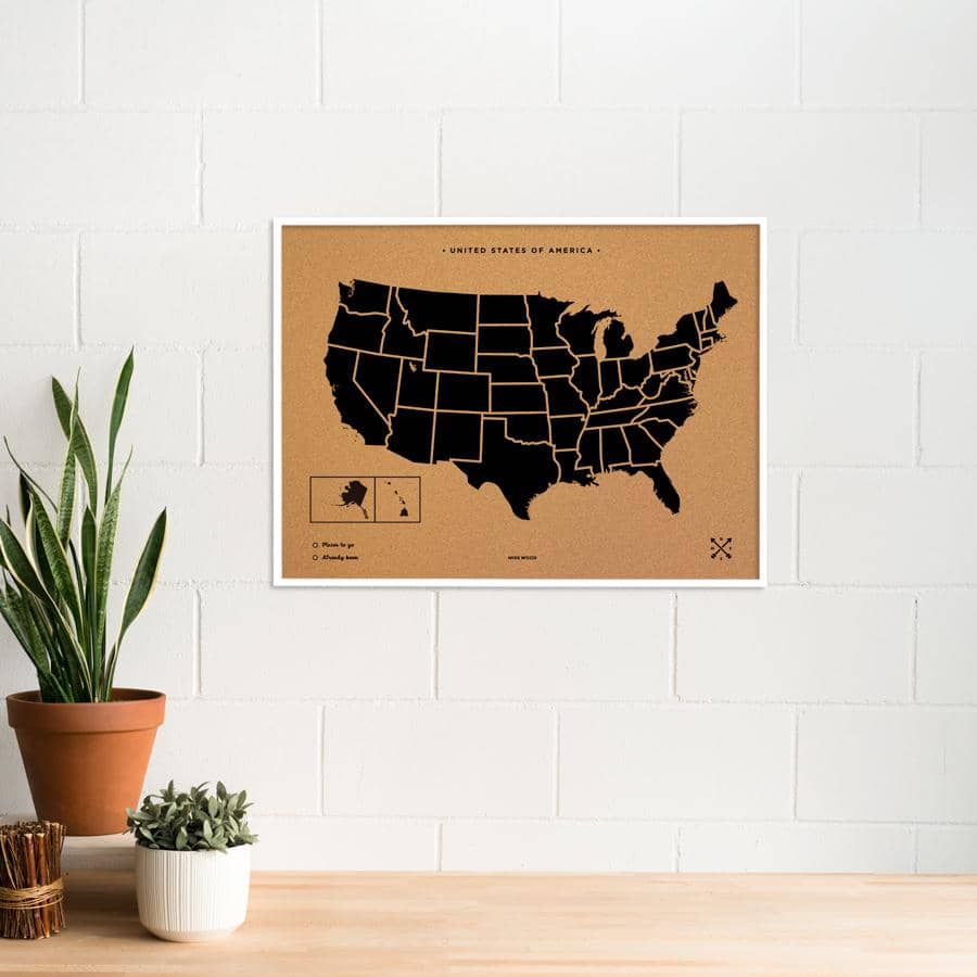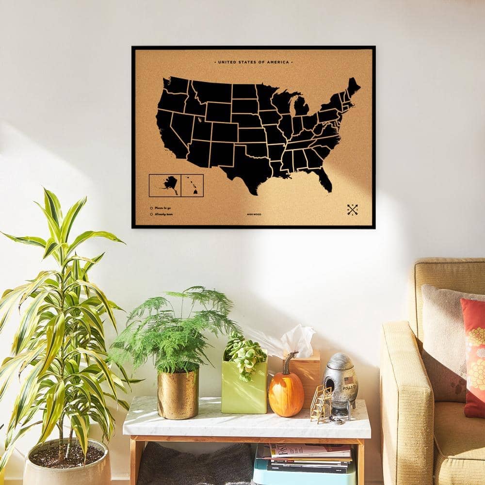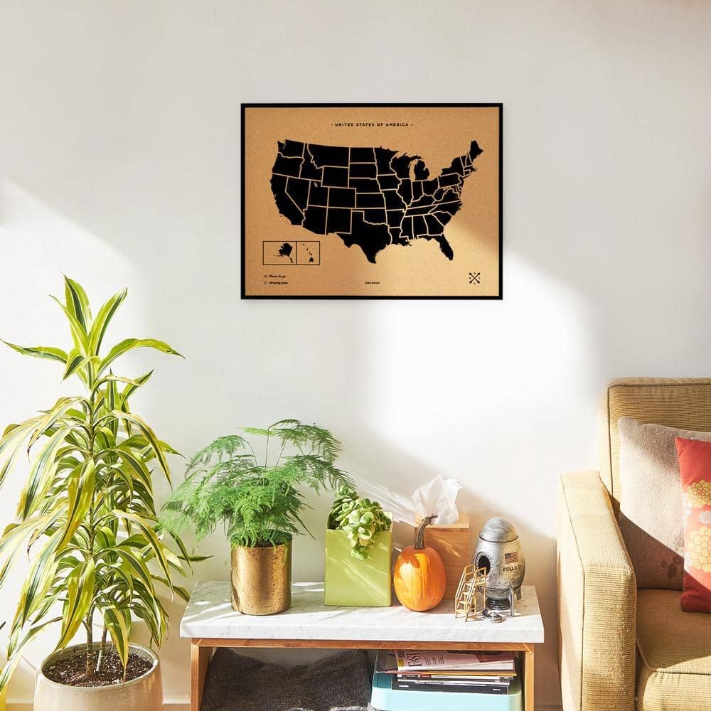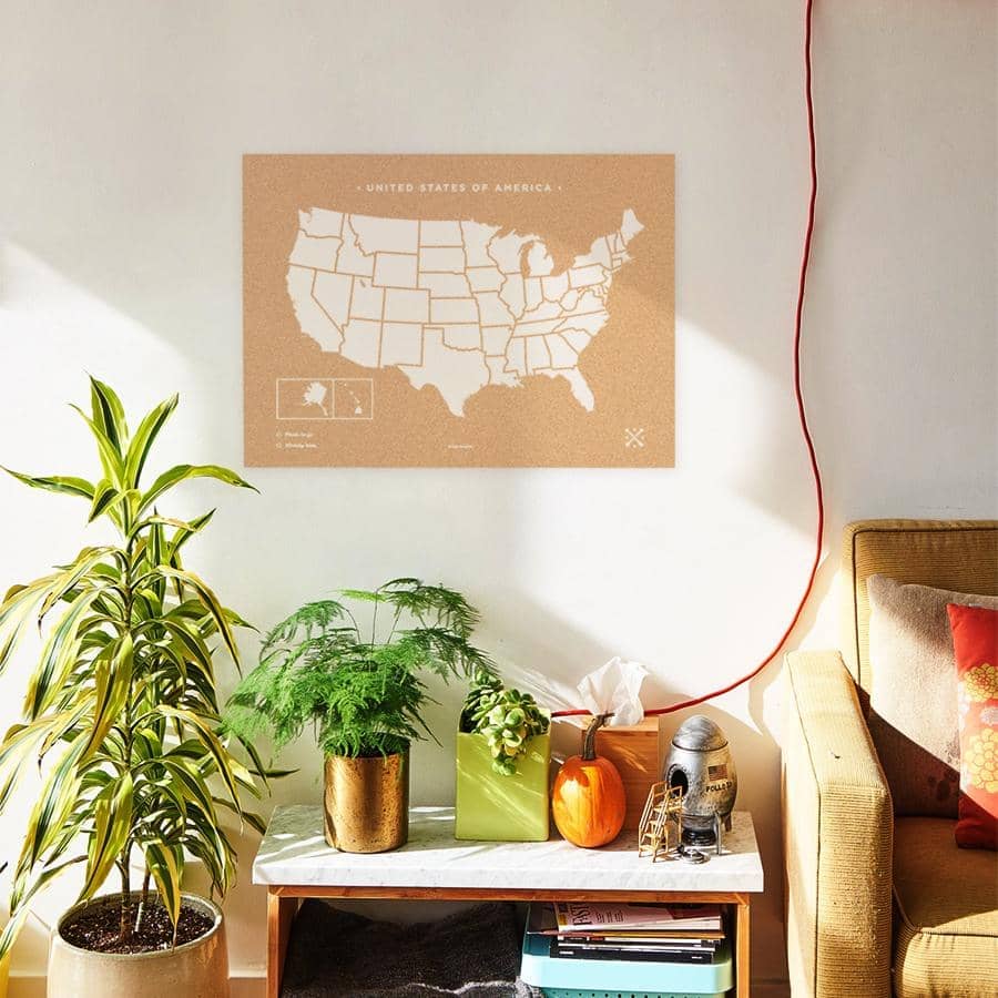 Decore as paredes da sua casa com um mapa dos Estados Unidos em cortiça. Escolha entre o branco e o preto para a moldura e o desenho e pense num local da sua casa onde o vai pendurar. Já o tem? Agora só falta clicar nos pinos incluídos no mapa e pendurar as suas fotografias de estilo vintage.