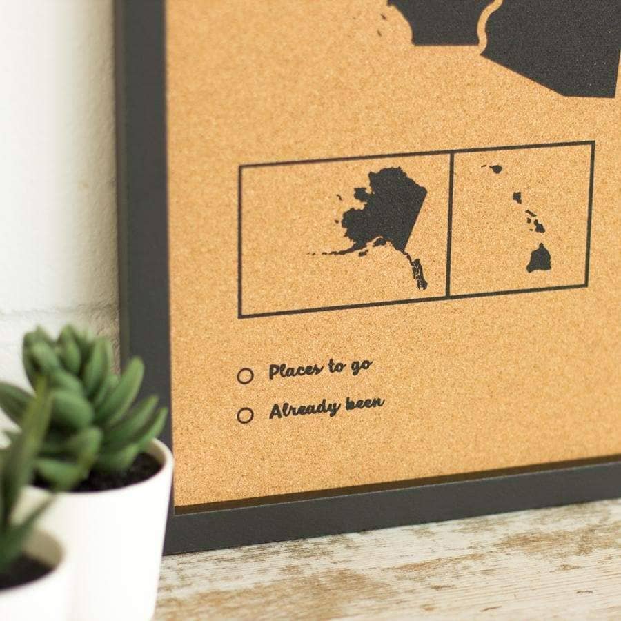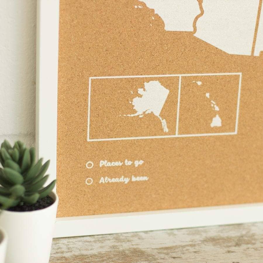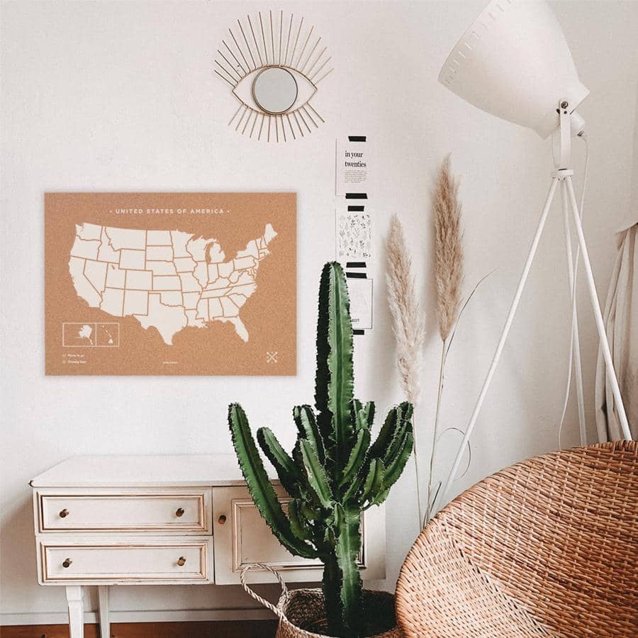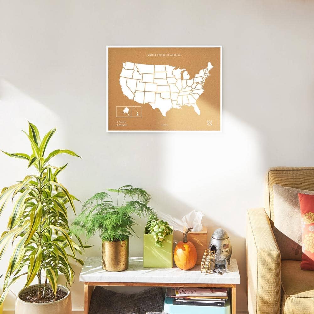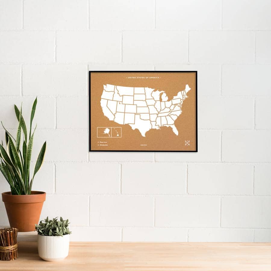 Decore as paredes da sua casa com um mapa dos Estados Unidos em cortiça. Escolha entre o branco e o preto para a moldura e o desenho e pense num local da sua casa onde o vai pendurar. Já o tem? Agora só falta clicar nos pinos incluídos no mapa e pendurar as suas fotografias de estilo vintage.