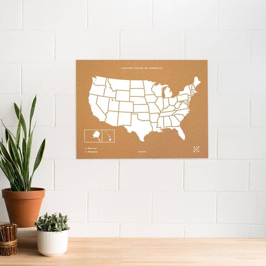 O Woody Map of the United States é o mapa em cortiça perfeito para os amantes dos Estados Unidos, que adoram viajar por cada um dos estados. Nele, pode pendurar as suas melhores recordações e assinalar os seus lugares preferidos.